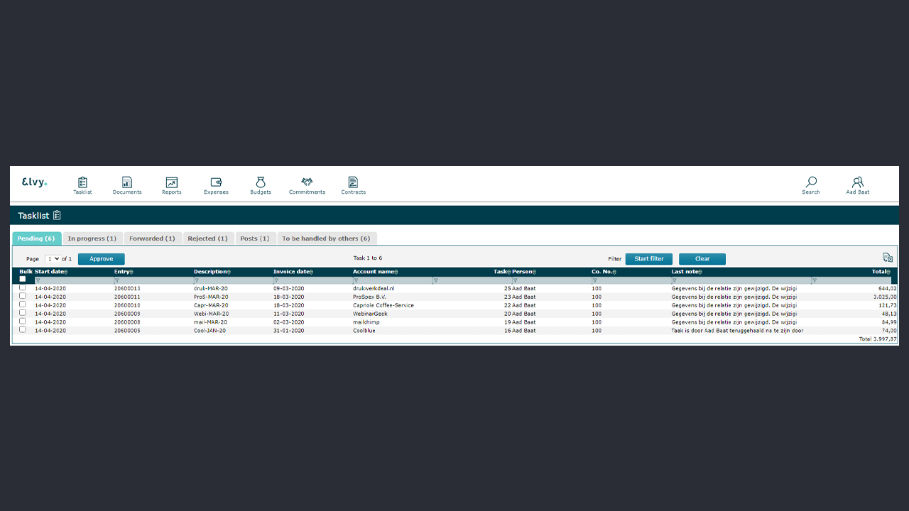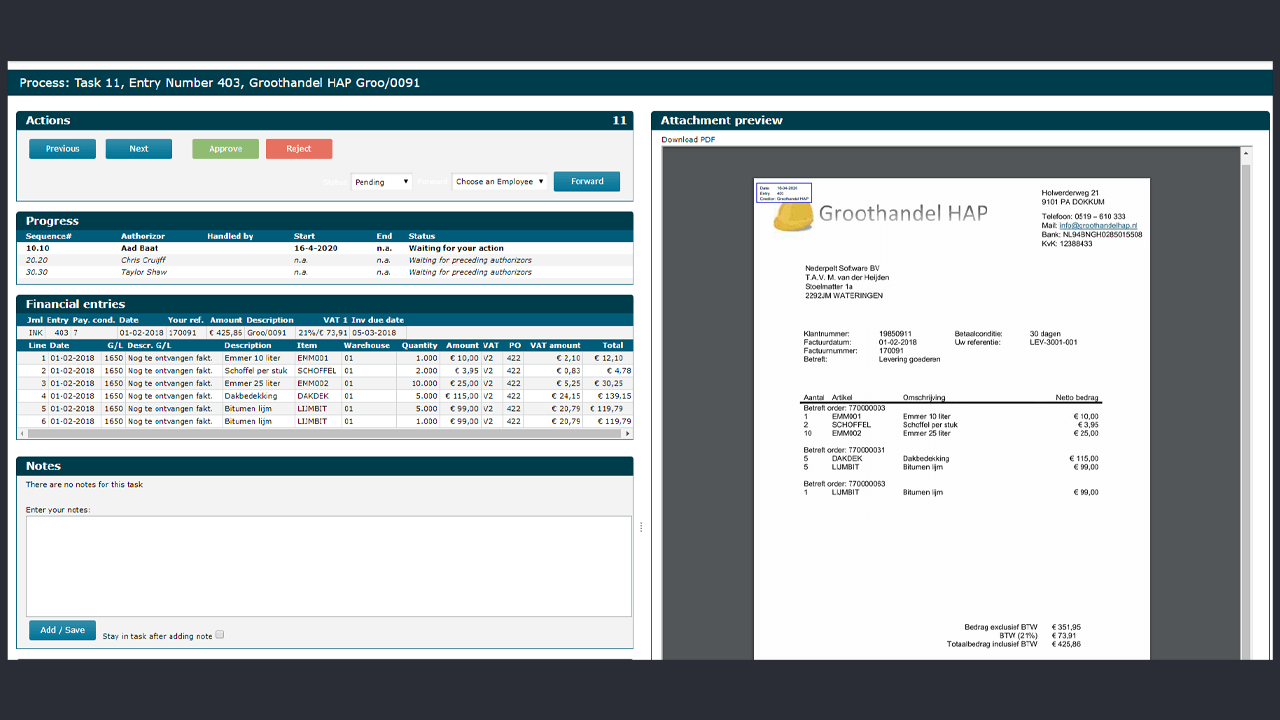 Verwerking van kostenfacturen en 3-Way-Matching van goederenfacturen.