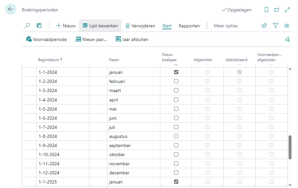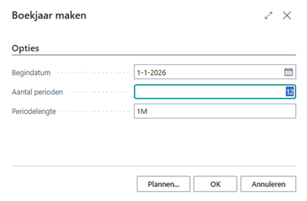Controleer vervolgens of voor het nieuwe boekjaar de perioden zijn aangemaakt. Als dit niet het geval is, kies dan voor "Nieuw jaar…"