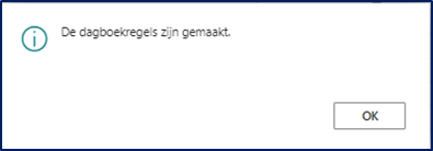 Vervolgens worden alle boekingen langsgelopen en nadat alle dagboekregels zijn klaargezet, volgt de volgende melding: