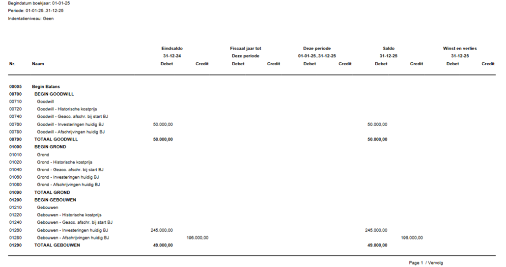 Druk tevens het rapport "Boekjaarbalans" af voor een overzicht van de situatie over het boekjaar 2025.