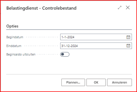 Om een Auditfile te exporteren uit Business Central, zoekt u deze functie Belastingdienst – Controlebestand op in Business Central.
