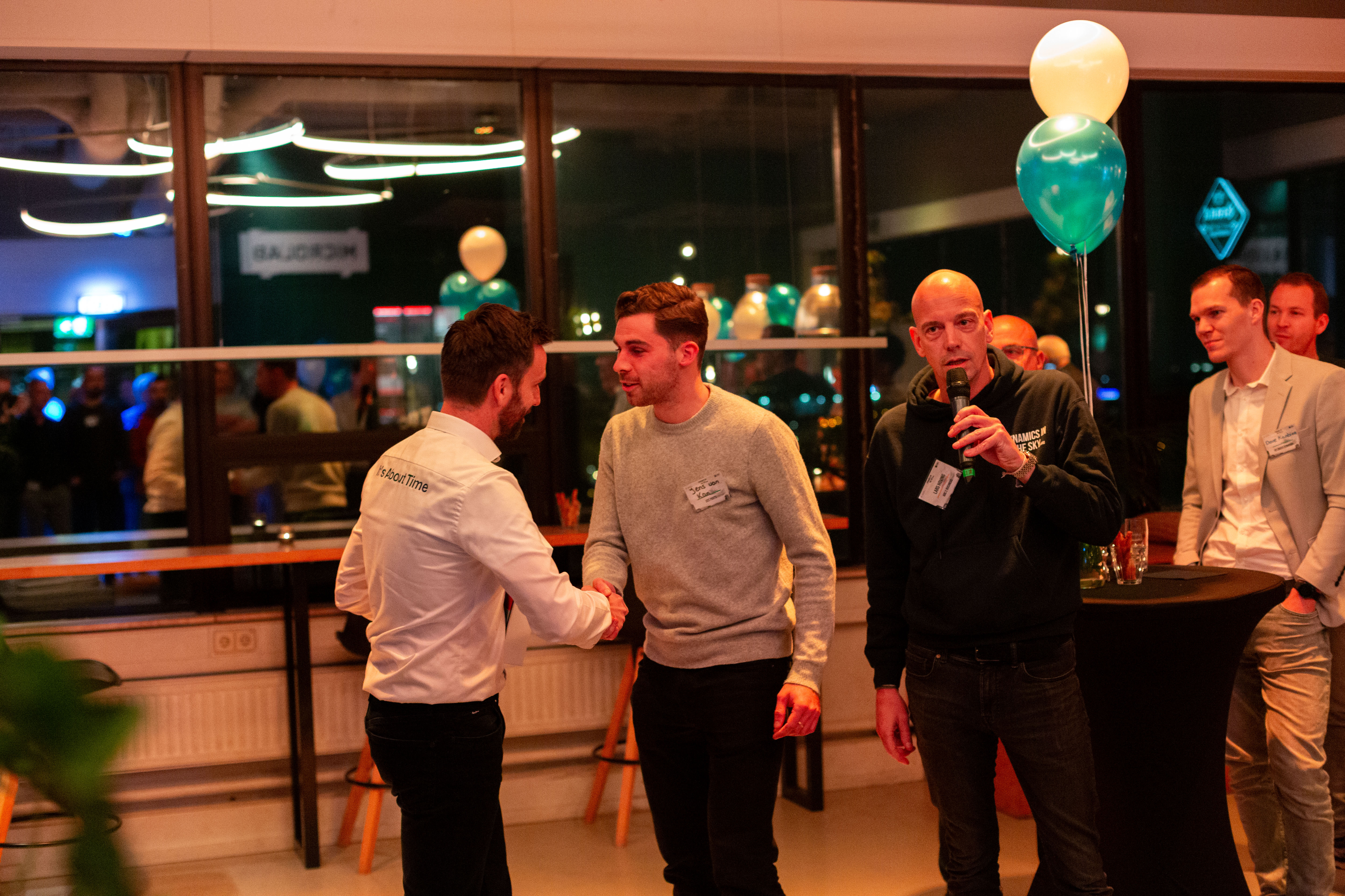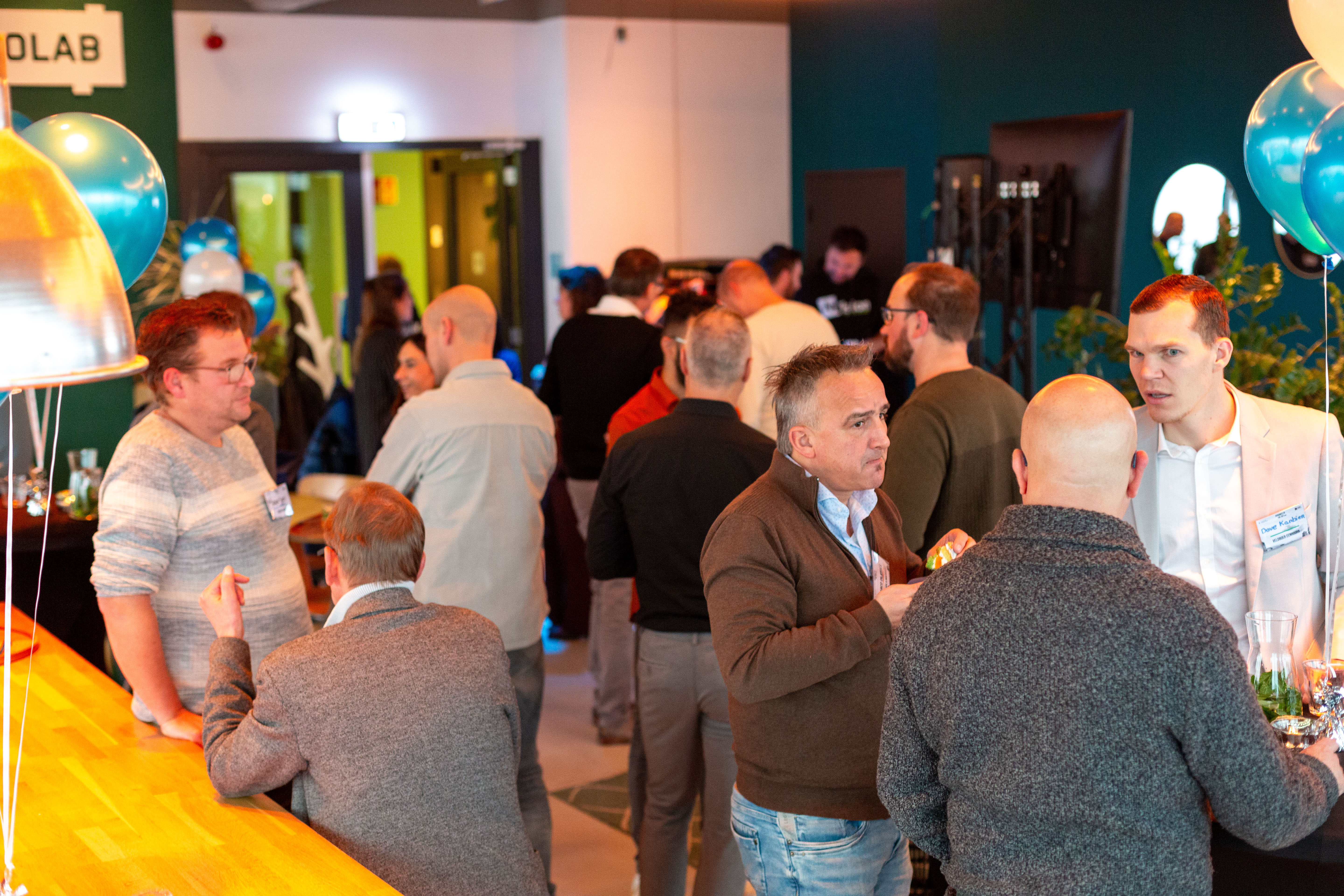 De middag werd afgesloten met een gezellige borrel, waar aanwezigen de kans kregen om te netwerken terwijl ze genoten van het mooie uitzicht over de stad Eindhoven vanuit de skybar van het Microlab. En laten we de spannende prijsuitreiking niet vergeten, waarbij Jens van Kan (UDS Parts) de waarde en het aantal muntjes in het spaarvarken goed had geraden en als gelukkige winnaar naar huis ging met de iPad! Om 18:00 uur eindigde het evenement en vertrokken de bezoekers huiswaarts, verrijkt met nieuwe kennis en een leuke goodiebag.